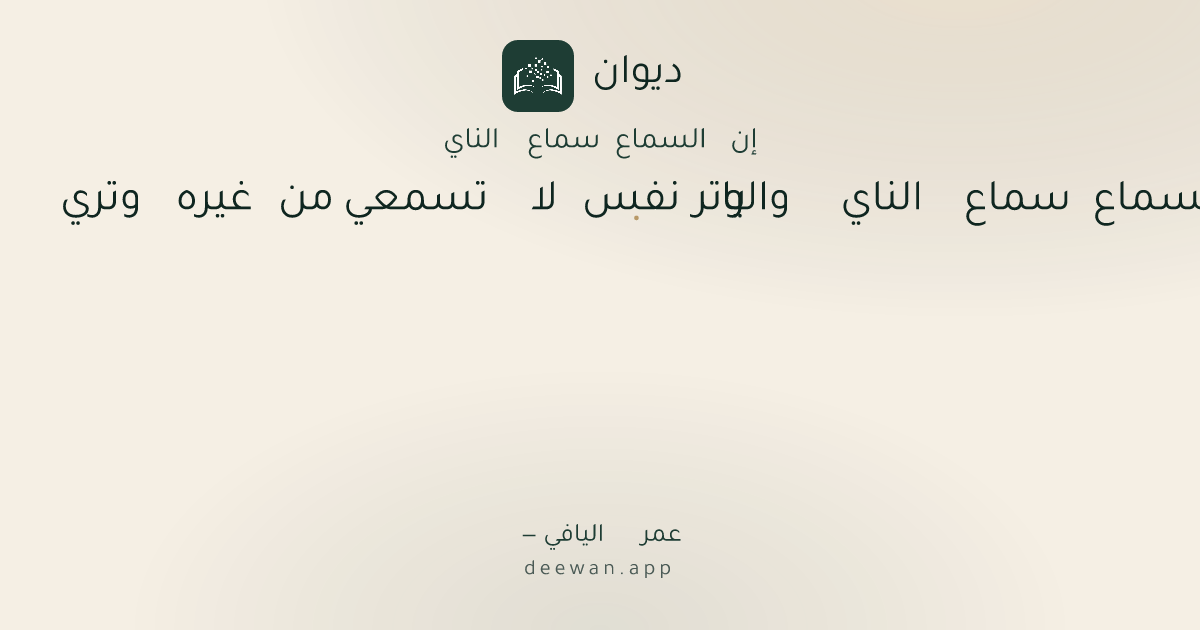 - 1إنّ السماع سماع الناي والوتر◆يا نفس لا تسمعي من غيره وتري