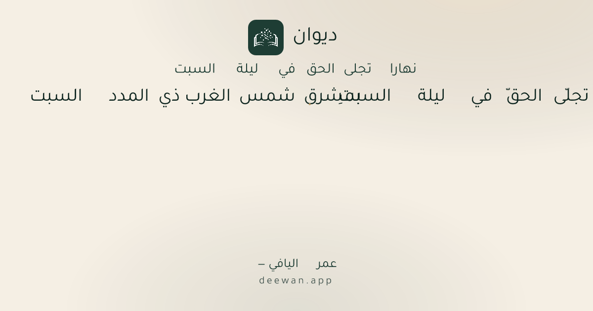 - 1نهاراً تجلّى الحقّ في ليلة السبتِ◆بمشرق شمس الغرب ذي المدد السبت