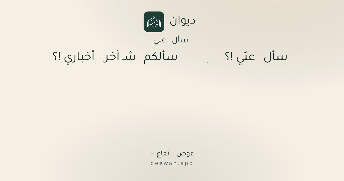 - 5وأخاف أحكي .. ويتكابر على قلبي◆إذا هو لاهي مع من صاروا أحبابه