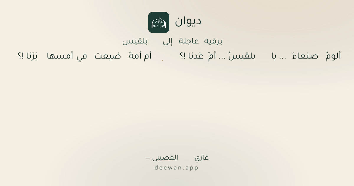- 1ألومُ صنعاءَ ... يا بلقيسُ ... أمْ عَدنا ؟!◆أم أمةً ضيعت في أمسها يَزَنا ؟!