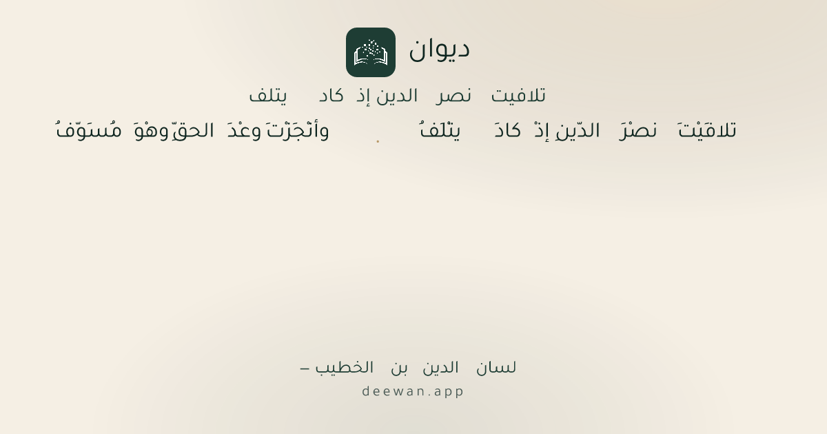 - 1تلافَيْتَ نصْرَ الدّينِ إذْ كادَ يتْلَفُ◆وأنْجَزْتَ وعْدَ الحقِّ وهْوَ مُسَوّفُ