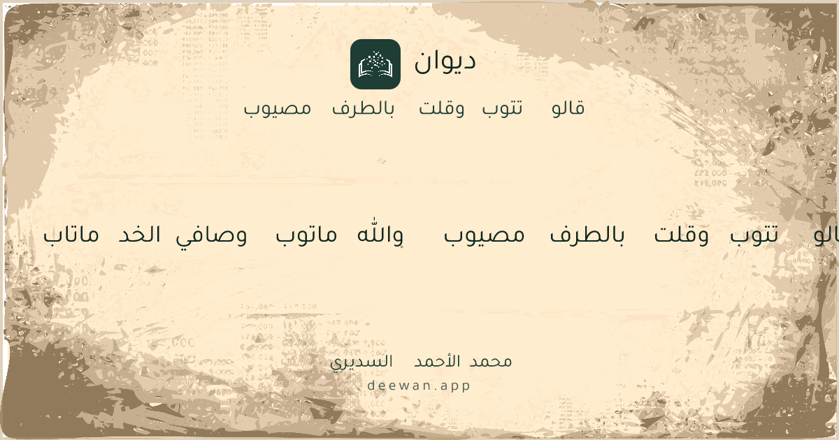 - 1قالو تتوب وقلت بالطرف مصيوب◆والله ماتوب وصافي الخد ماتاب