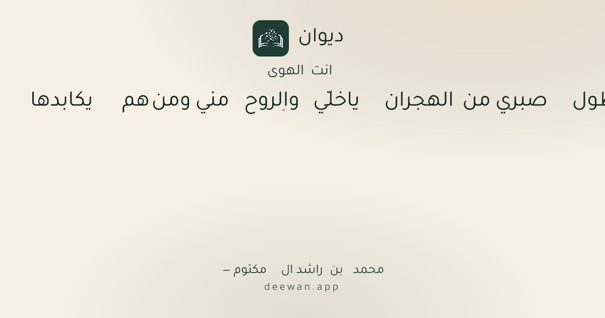 - 1ياطول صبري من الهجران ياخلّي◆والروح مني ومن هم يكابدها