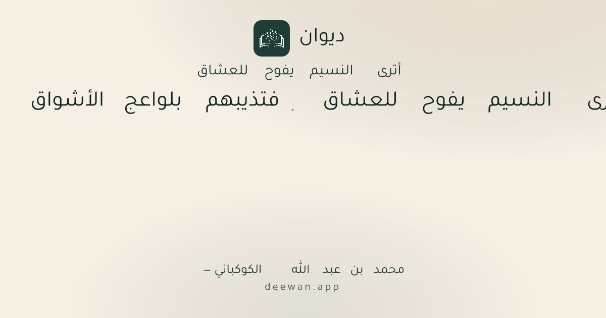 - 1أترى النسيم يفوح للعشاق◆فتذيبهم بلواعج الأشواق