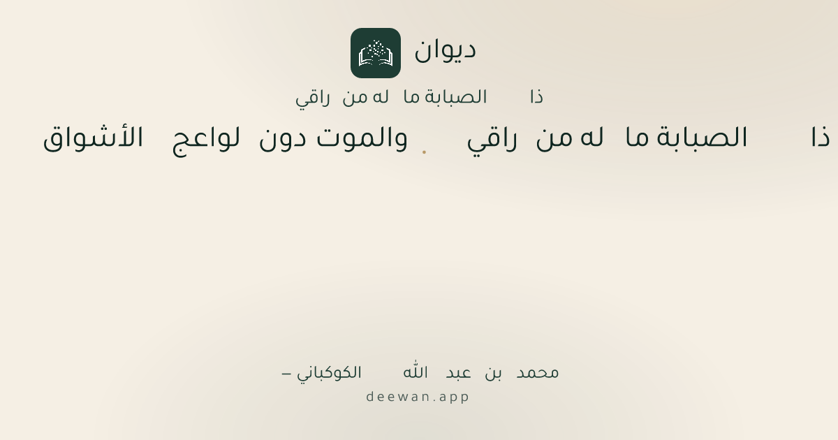 - 1ذا الصبابة ما له من راقي◆والموت دون لواعج الأشواق