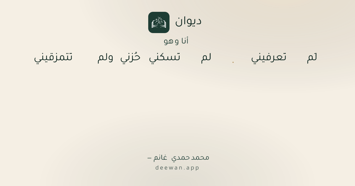 - 1لَم تَعرفيني◆لم تَسكني حُزني ولم تَتمزقيني