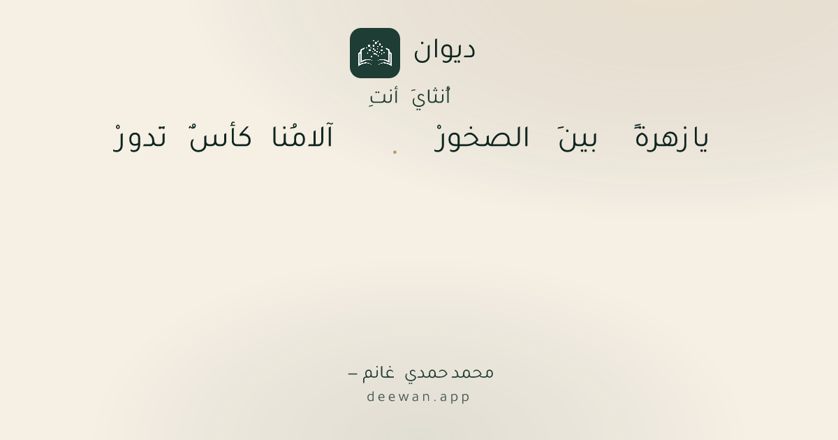 - 1يا زهرةً بينَ الصخورْ◆آلامُنا كأسٌ تَدورْ