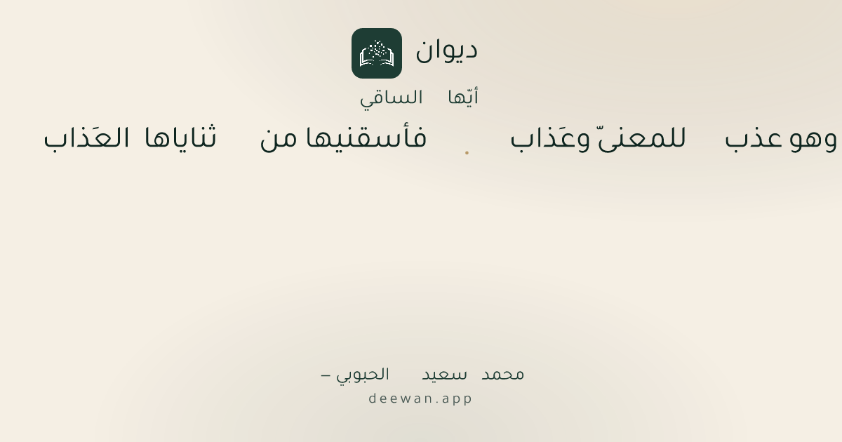 - 1وهو عذب للمعنىّ وعَذاب◆فأسقنيها من ثناياها العَذاب