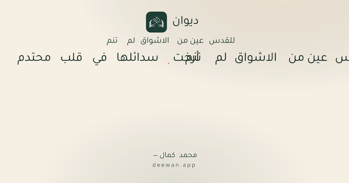 - 1للقدس عين من الاشواق لم تنم◆أرخت سدائلها في قلب محتدم