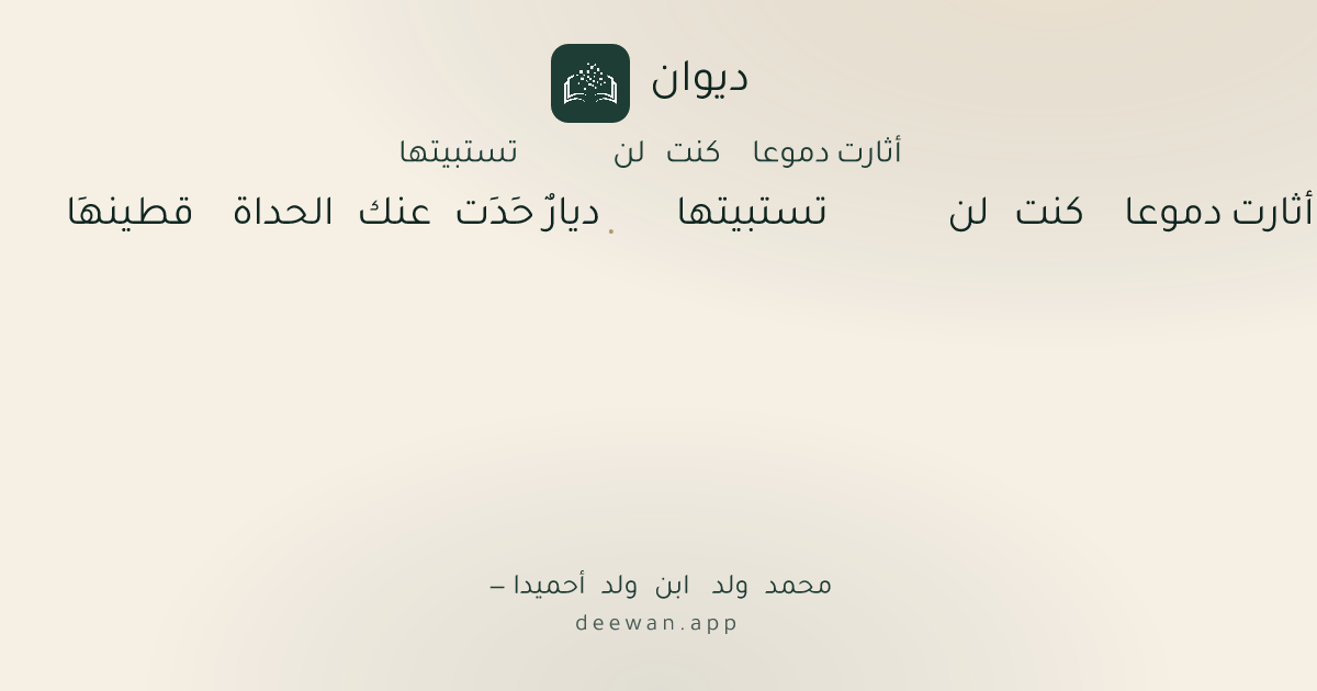 - 1أثارت دموعا كنت لن تستبيتها◆ديارٌ حَدَت عنك الحداة قطينهَا