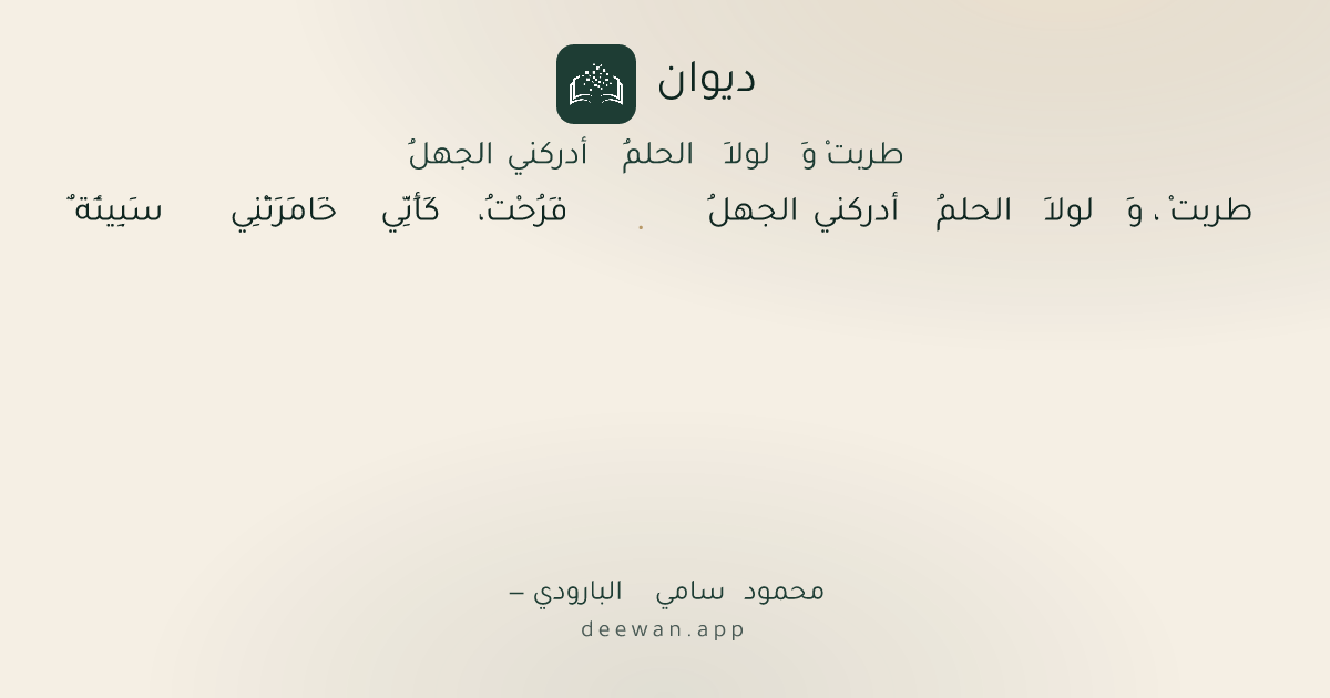- 1طربتْ ، وَ لولاَ الحلمُ أدركني الجهلُ◆فَرُحْتُ، كَأَنِّي خَامَرَتْنِي سَبِيئَة ٌ