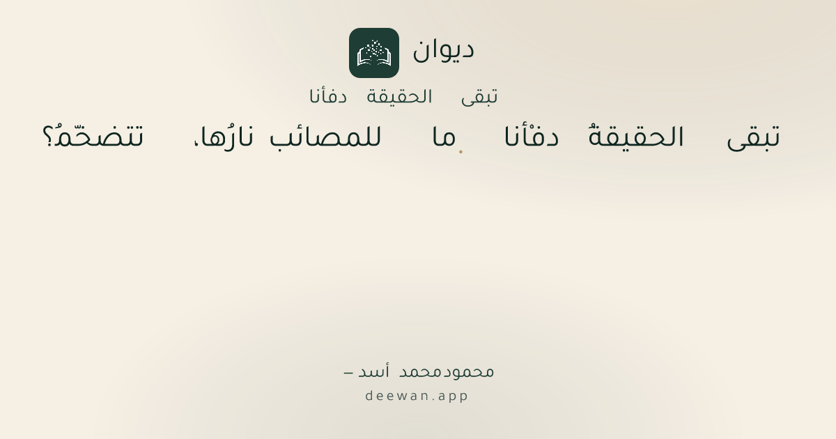 - 1تبقى الحقيقةُ دفْأنا◆ما للمصائب نارُها, تتضخّمُ؟