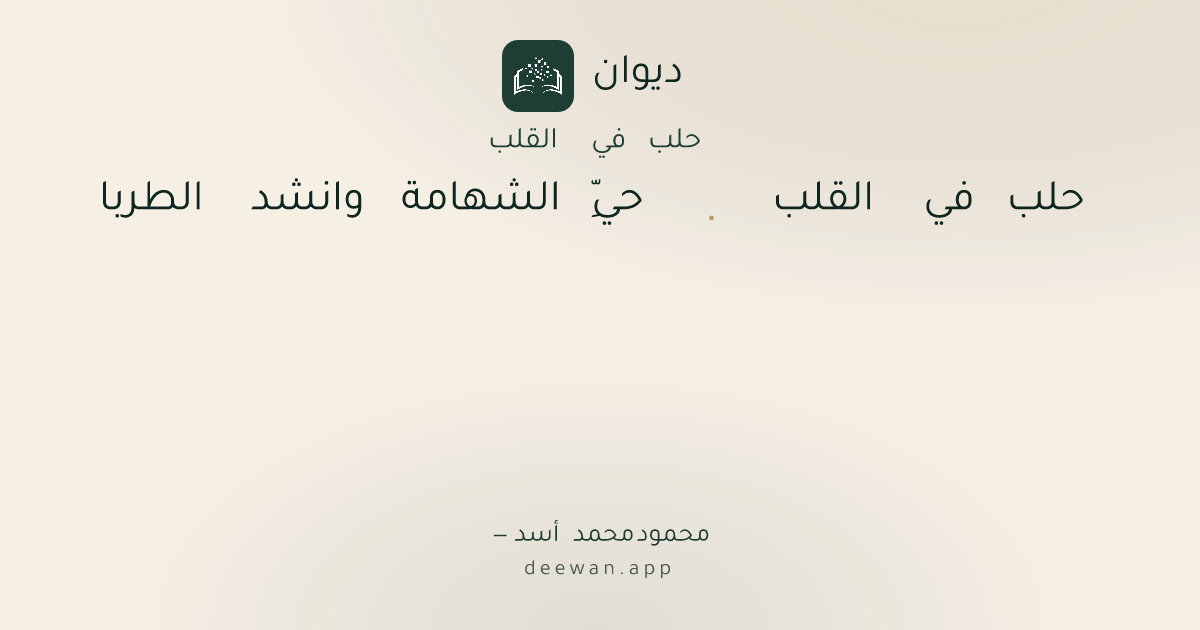 - 1حلب في القلب◆حيِّ الشهامة وانشد الطربا