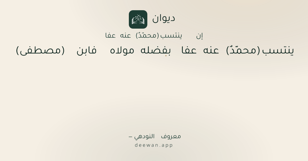 - 1إن ينتسب (محمَّدٌ) عنه عفا◆بفضله مولاه فابن (مصطفى)