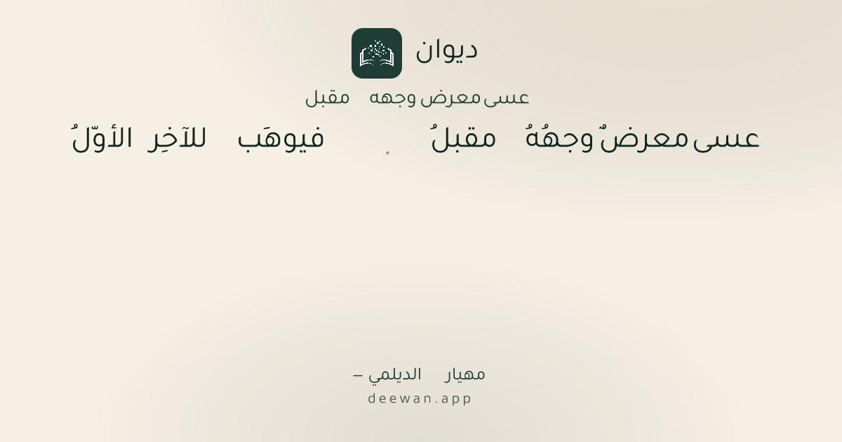 - 1عسى معرضٌ وجهُهُ مقبلُ◆فيوهَب للآخِر الأوّلُ