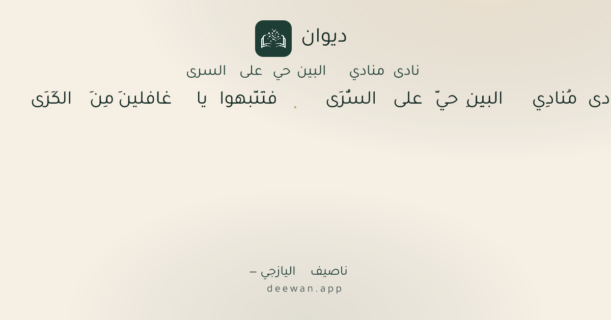 - 1نادى مُنادِي البيِنِ حيَّ على السُّرَى◆فتَنَّبهوا يا غافلينَ مِنَ الكَرَى