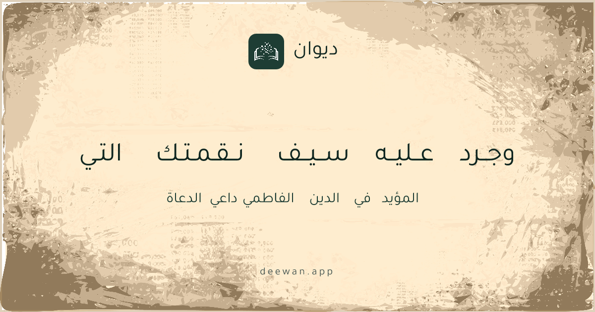 العصر الفاطميالطويلوجــرد عــليــه ســيــف نــقـمـتـك التـيالمؤيد في الدين الفاطمي داعي الدعاةashaarأبيات شبيهةحفظ كصورة