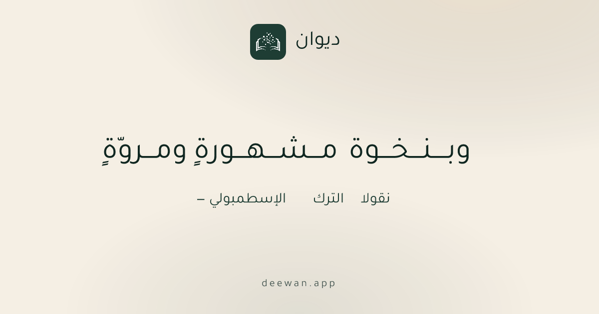 العصر الحديثوبــــنـــخـــوة مـــشـــهـــورةٍ ومـــروّةٍنقولا الترك الإسطمبوليashaarحفظ كصورةالبحر الكامل