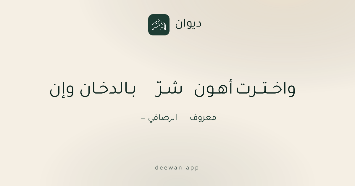واخــتــرت أهـون شـرّ بـالدخـان وإن