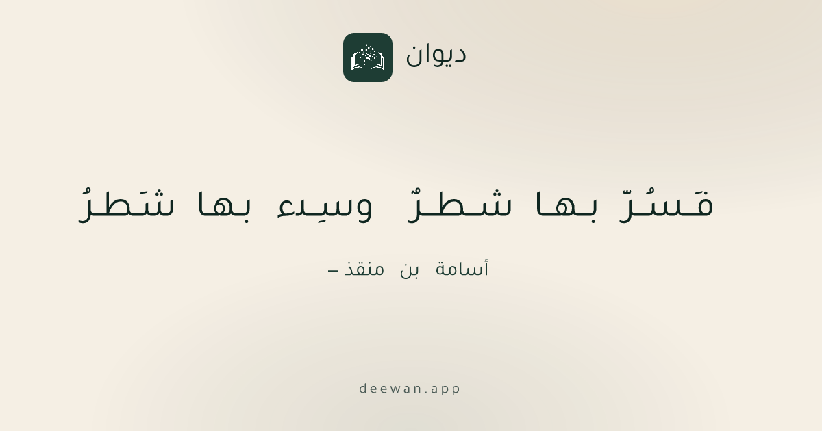 العصر الأيوبيفَــسُــرَّ بــهــا شــطــرٌ وسِــىء بـهـا شَـطـرُأسامة بن منقذashaarحفظ كصورةالبحر الطويل