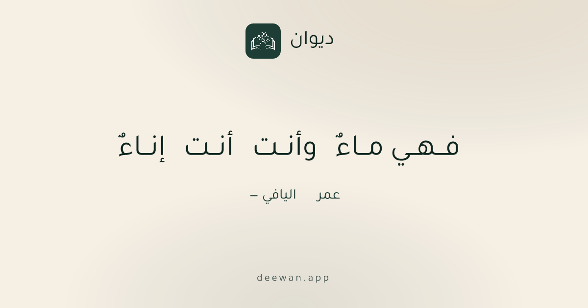فــهــي مــاءٌ وأنــت أنــت إنــاءٌ