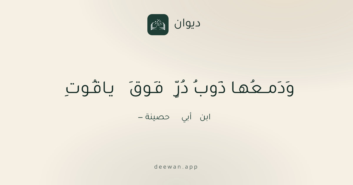 وَدَمــعُهـا ذَوبُ دُرٍّ فَـوقَ يـاقُـوتِ