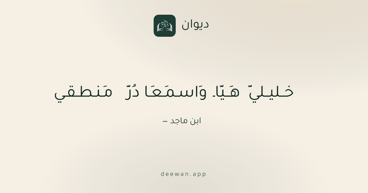 خــليــليَّ هَــيَّاـ وَاسـمَـعَـا دُرَّ مَـنـطـقـي