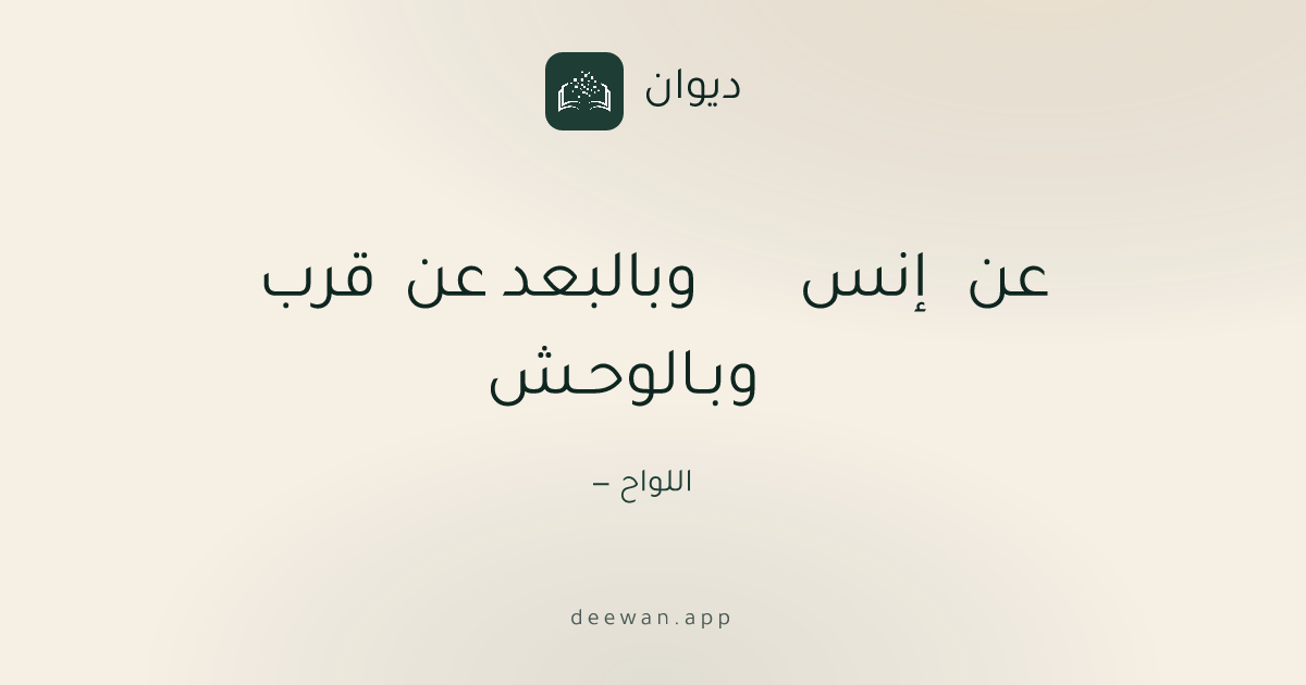 وبـالوحـش عن إنس وبالبعد عن قرب