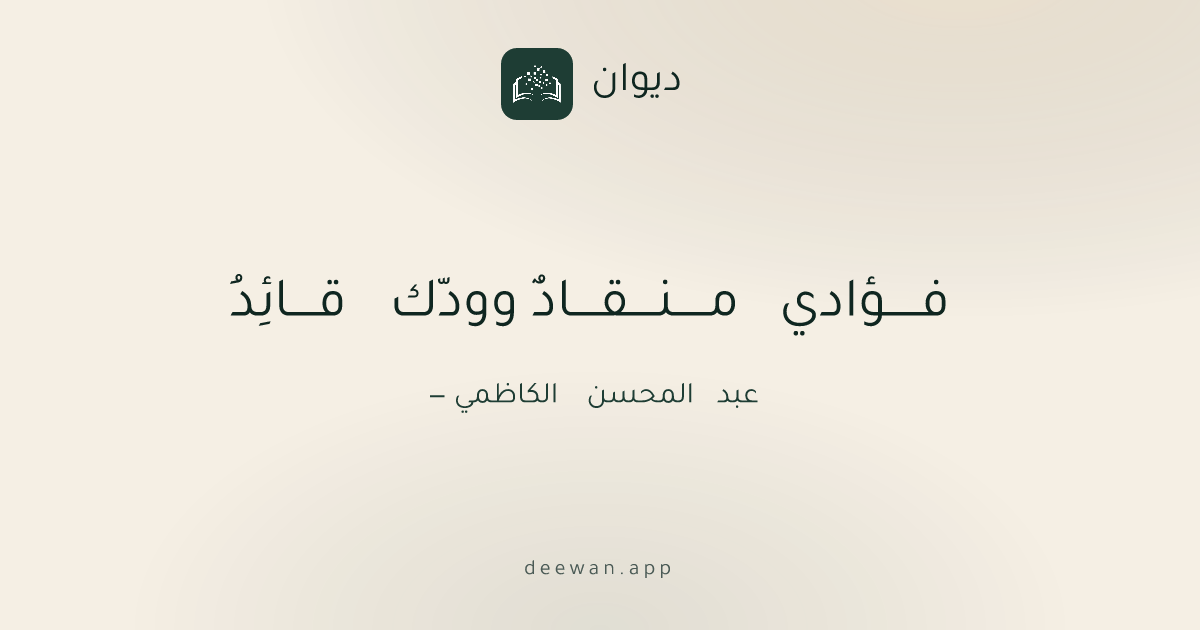 العصر الحديثفـــــؤادي مـــــنــــقــــادٌ وودّك قــــائِدُعبد المحسن الكاظميashaarحفظ كصورةالبحر الطويل