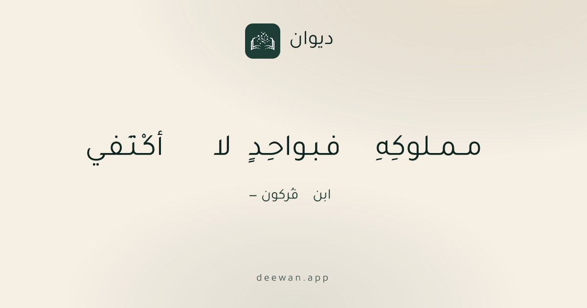 مــمــلوكِهِ فـبـواحِـدٍ لا أكْـتَـفـي