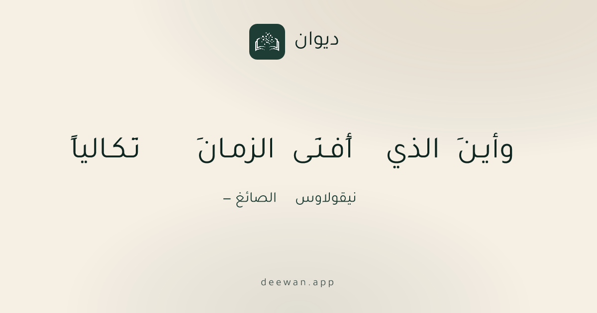 وأيـنَ الذي أَفـنَـى الزمـانَ تَـكـالياً