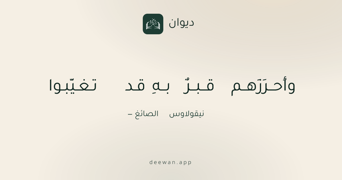 العصر العثمانيوأَحــرَزَهــم قــبــرٌ بــهِ قـد تـغـيَّبـوانيقولاوس الصائغashaarحفظ كصورةالبحر الطويل