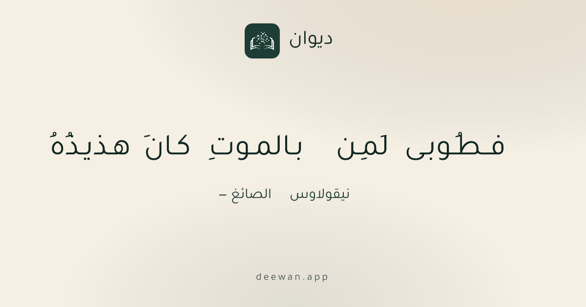 فــطُـوبـى لَمِـن بـالمـوتِ كـانَ هـذيـذُهُ