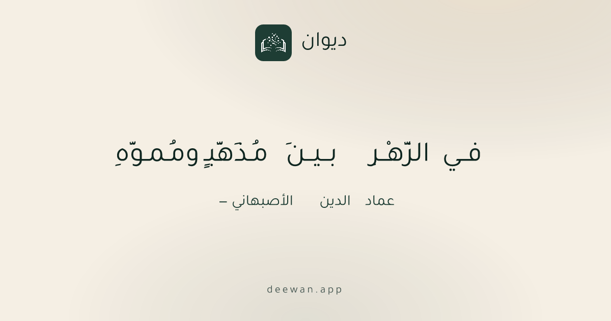 العصر الأيوبيفــي الزَّهْــرِ بــيــنَ مُـذَهَّبـٍ ومُـمـوَّهِعماد الدين الأصبهانيashaarحفظ كصورةالبحر الكامل