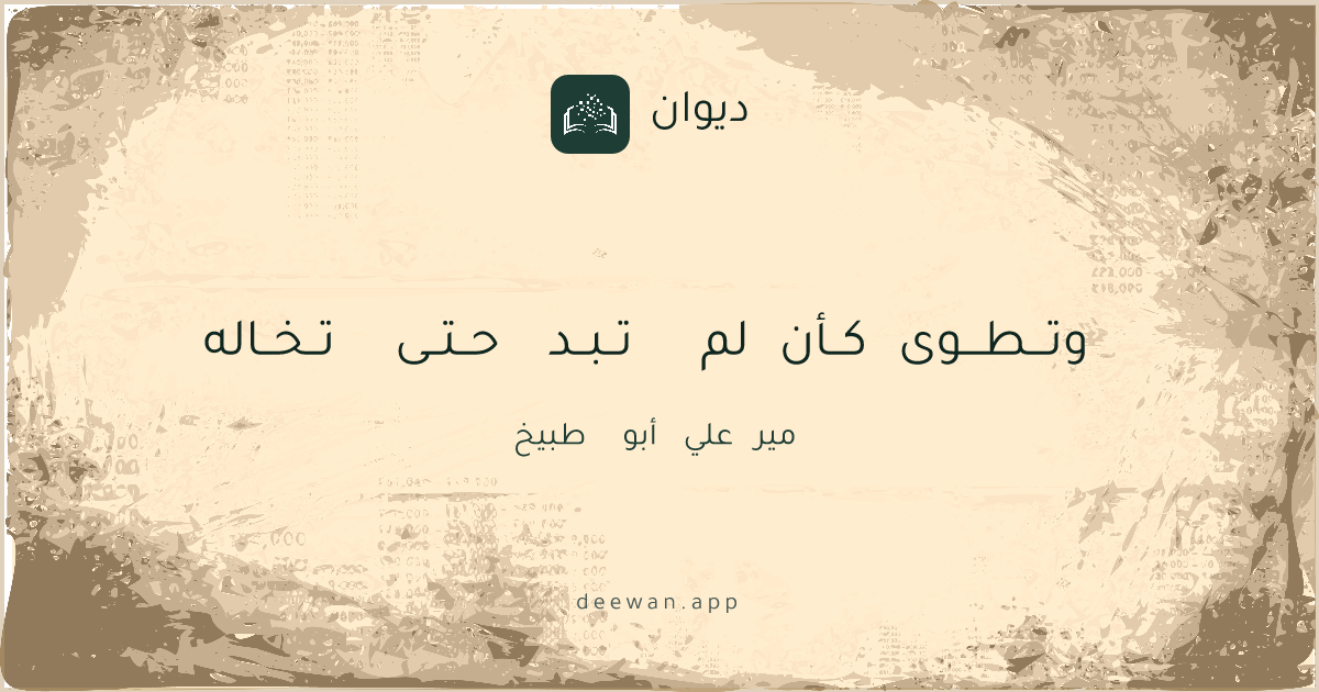 العصر الحديثالطويلوتـــطـــوى كــأن لم تــبــد حــتــى تــخــالهمير علي أبو طبيخashaarأبيات شبيهةحفظ كصورة