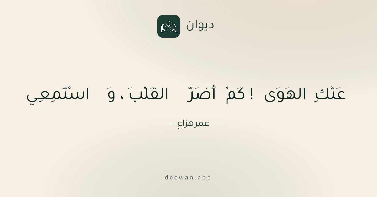 عَنْكِ الهَوَى ! كَمْ أَضَرَّ القَلْبَ , وَ اسْتَمِعِـي
