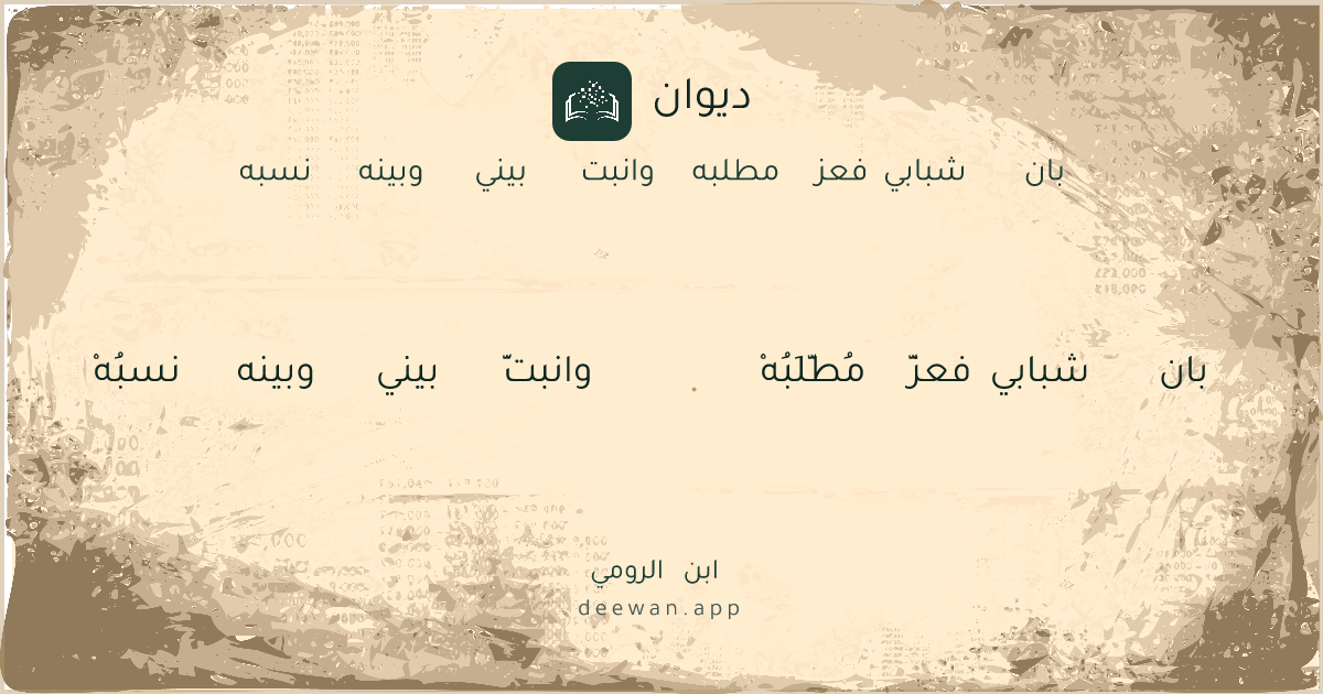 - 1بان شبابي فعزَّ مُطَّلَبُهْ◆وانبتَّ بيني وبينه نسبُهْ