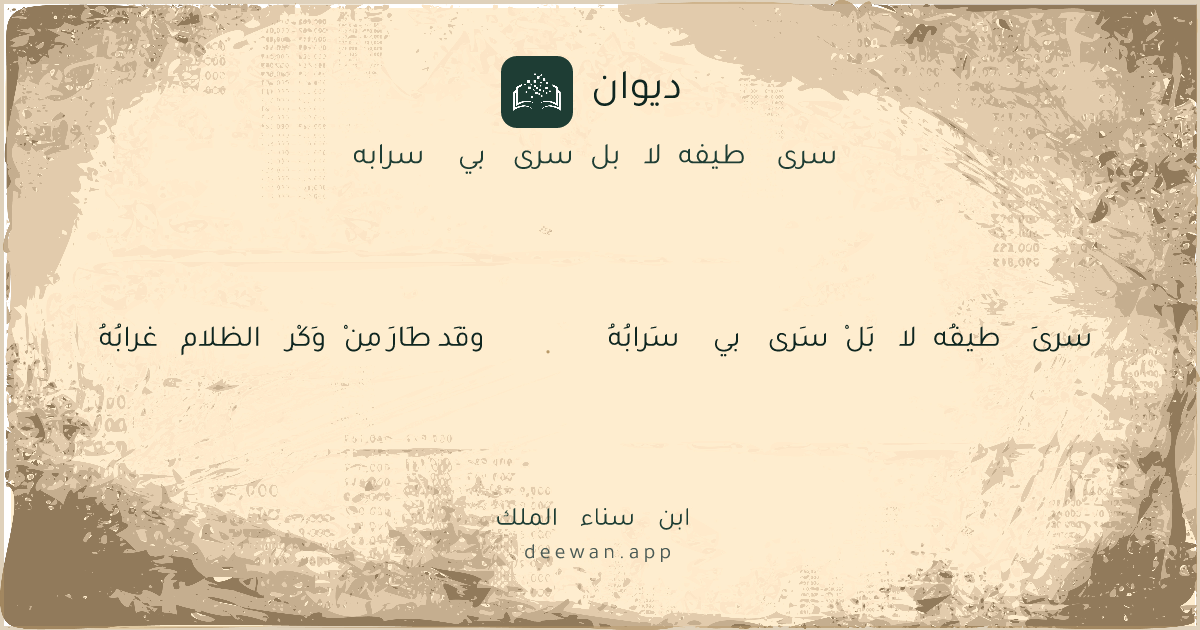- 1سرىَ طيفُه لا بَلْ سَرى بي سَرابُهُ◆وقَد طَارَ مِنْ وَكْرِ الظلام غرابُهُ