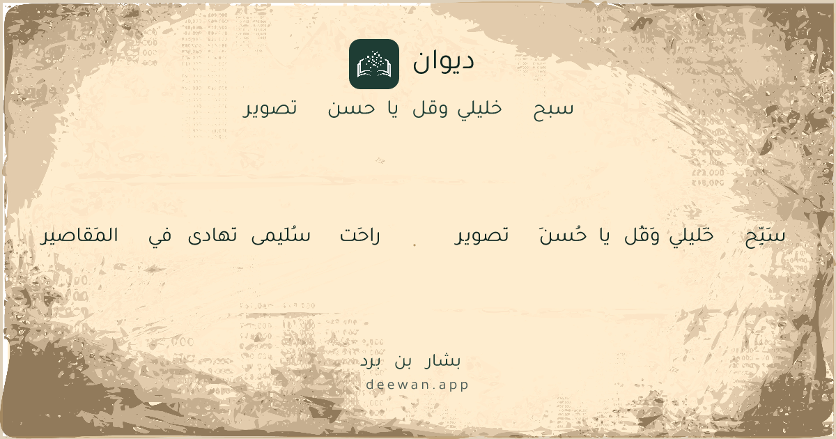 - 1سَبِّح خَليلي وَقُل يا حُسنَ تَصويرِ◆راحَت سُلَيمى تَهادى في المَقاصيرِ