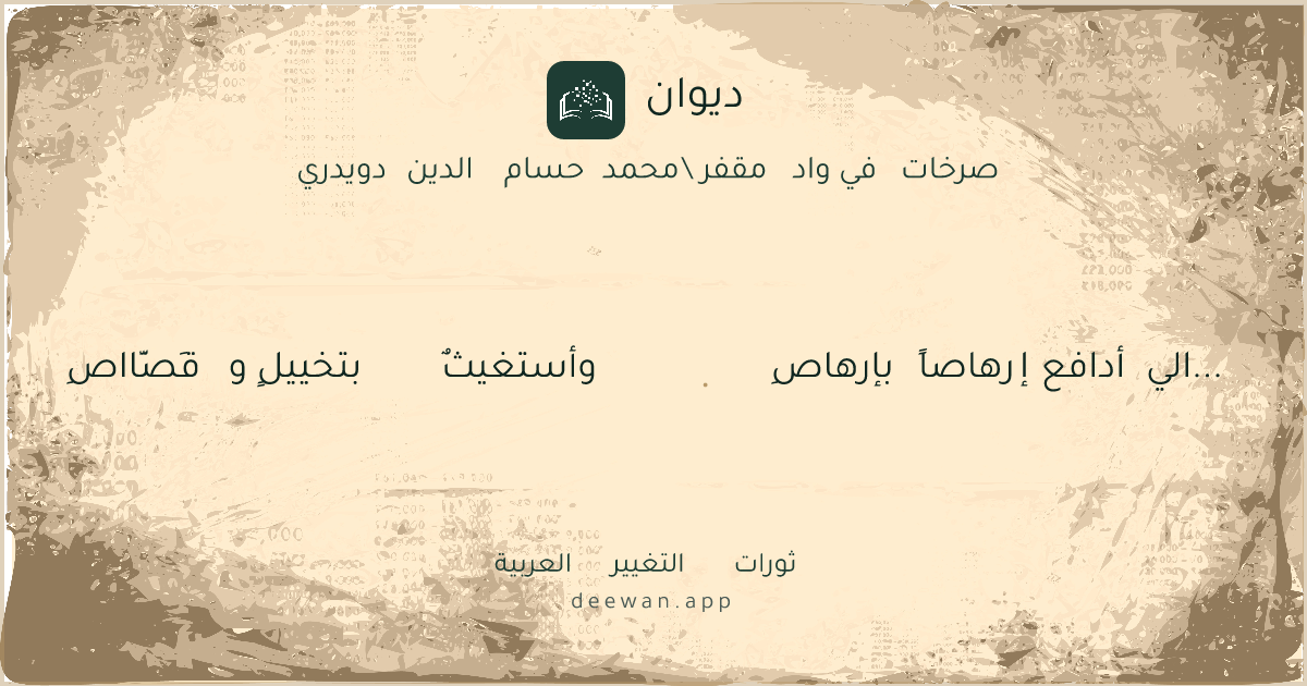 - 1الي... أدافع إرهاصاً بإرهاصِ◆وأستغيثٌ بتخييلٍ و قَصَّااصِ