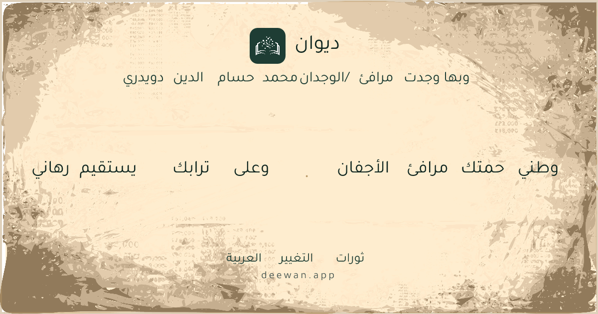 - 39إني وجدت على ثراها هدأتي◆وبها وجدت مرافئ الوجدان