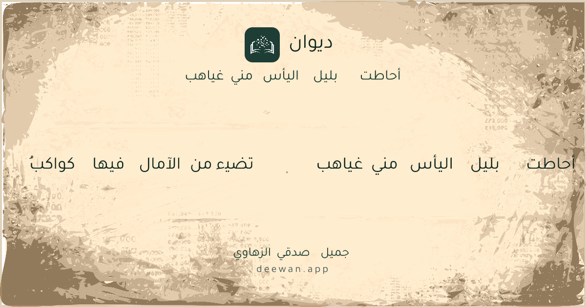 - 1أحاطت بليل اليأس مني غياهب◆تضيء من الآمال فيها كواكبُ