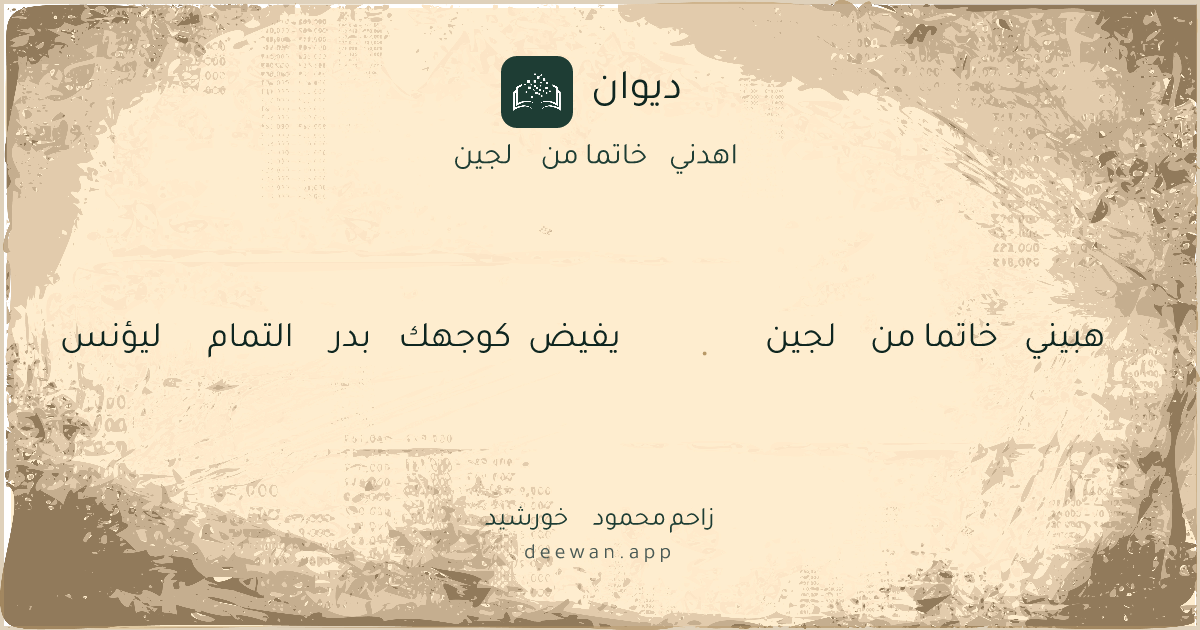 - 1هبيني خاتما من لجين◆يفيض كوجهك بدر التمام ليؤنس