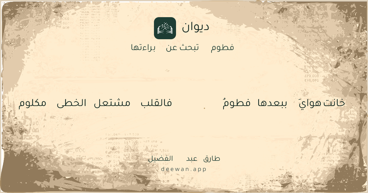 - 1خانت هوايَ ببعدها فطومُ◆فالقلب مشتعل الخطى مكلوم