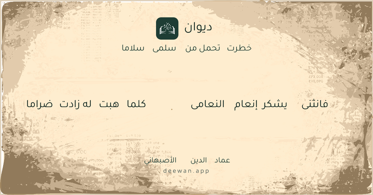 - 1فانثنى يشكر إنعام النعامى◆كلما هبت له زادت ضراما