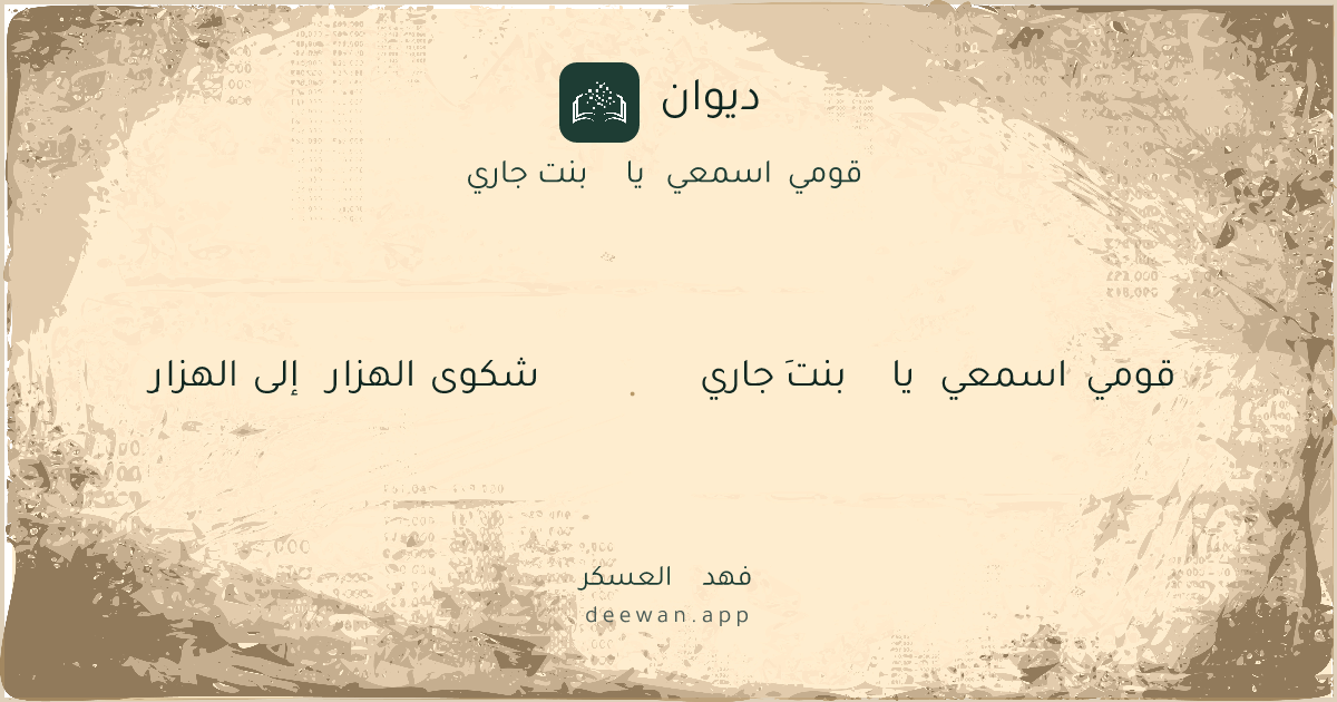 - 1قومي اسمعي يا بنتَ جاري◆شكوى الهزار إلى الهزارِ