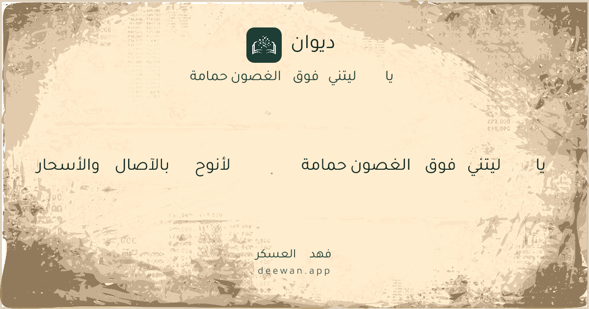 - 1يا ليتني فوق الغصون حمامة◆لأنوح بالآصال والأسحار