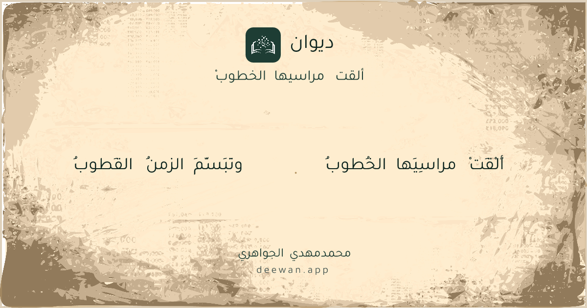 - 1أَلْقَتْ مراسِيَها الخُطوبُ◆وتَبَسَّمَ الزمنُ القَطوبُ