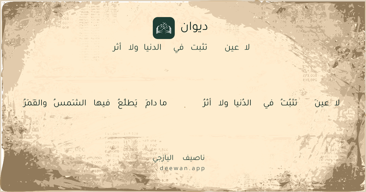 - 1لا عينَ تَثبُتُ في الدُنيا ولا أثَرُ◆ما دامَ يَطلُعُ فيها الشَمسُ والقَمَرُ
