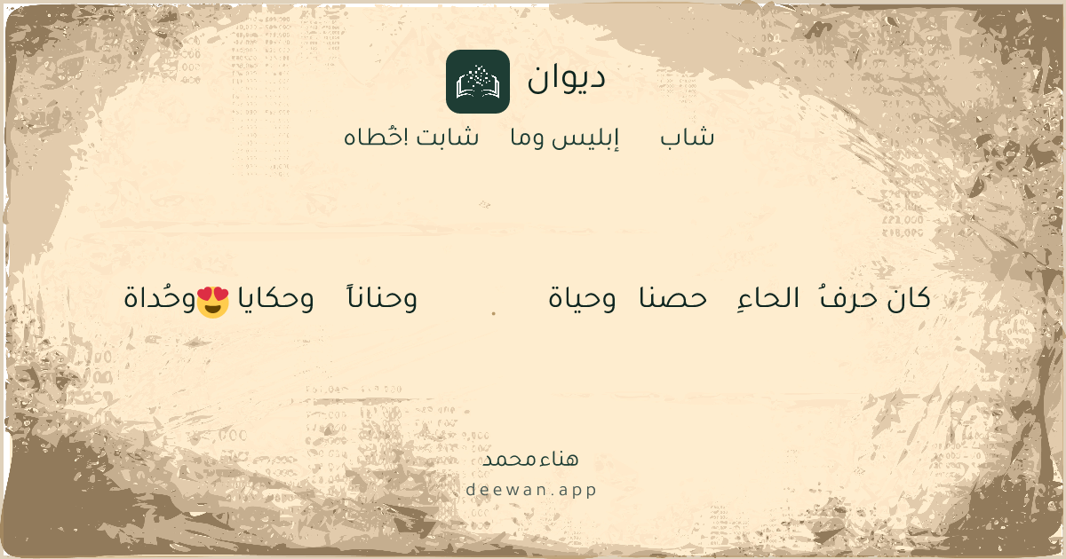 - 1كان حرفُ الحاءِ حصنا وحياة◆وحناناً وحكايا وحُداة😍